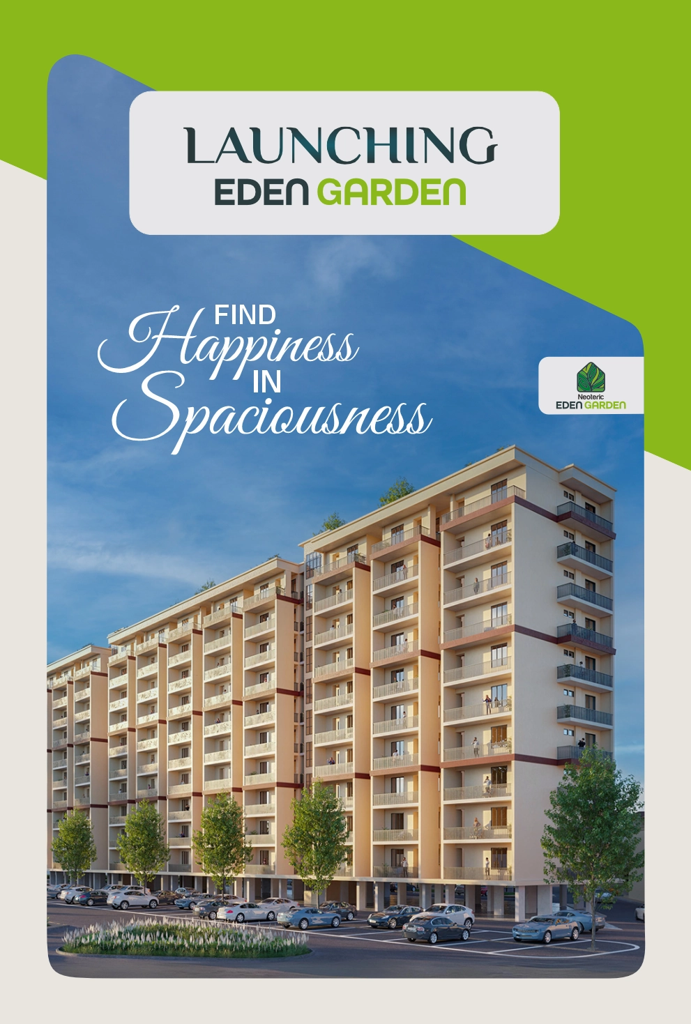 Within Neoteric Garden City, we proudly present Eden Garden, a thoughfully crafted enclave offering 2 & 3 BHK flats designed to provide a living experience that feels like a “Garden of Joy.” Surrounded by vibrant beauty and modern comforts, Eden Garden is the perfect place to cultivate your own world with loved ones.